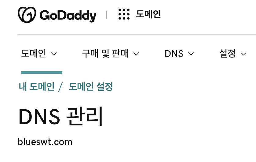 고대디로 들어가서 DNS 관리로 들어갑니다.