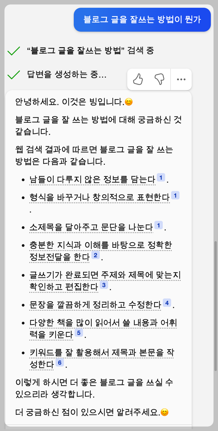 빙에게 블로그 글을 잘 쓰는법을 물어보았다